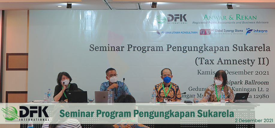 Directorate General of Taxes published a programme for all taxpayers to disclose tax liability voluntarily according to unreported assets. To support this programme, KAP Anwar & Rekan held a Seminar for all clients on Thursday, December 2nd 2021 with title Voluntary Disclosure Programme (Tax Amnesty II). We invite speaker from tax office, thus the information and guidance given are relevant and proper for seminar participants who want to follow this programme.